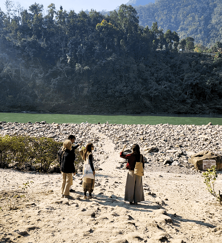 One morning, we took a break from the schedule and we were taken by Rohit and Nikunj (local guide) to Vashisht Cave – an ancient meditation cave nestled beside the sacred Ganges. It is said that the sage Vashishta meditated here for many years, entering deep states of realisation.